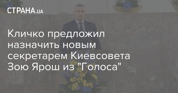 "Определился с кандидатурой на нового секретаря Киевсовета и предложил всем фракциям присоединиться к его обсуждению. После консультаций внесу в сессионный зал на этот пост кандидатуру депутата от фракции "Голос" Зои Ярош", - написал Кличко.