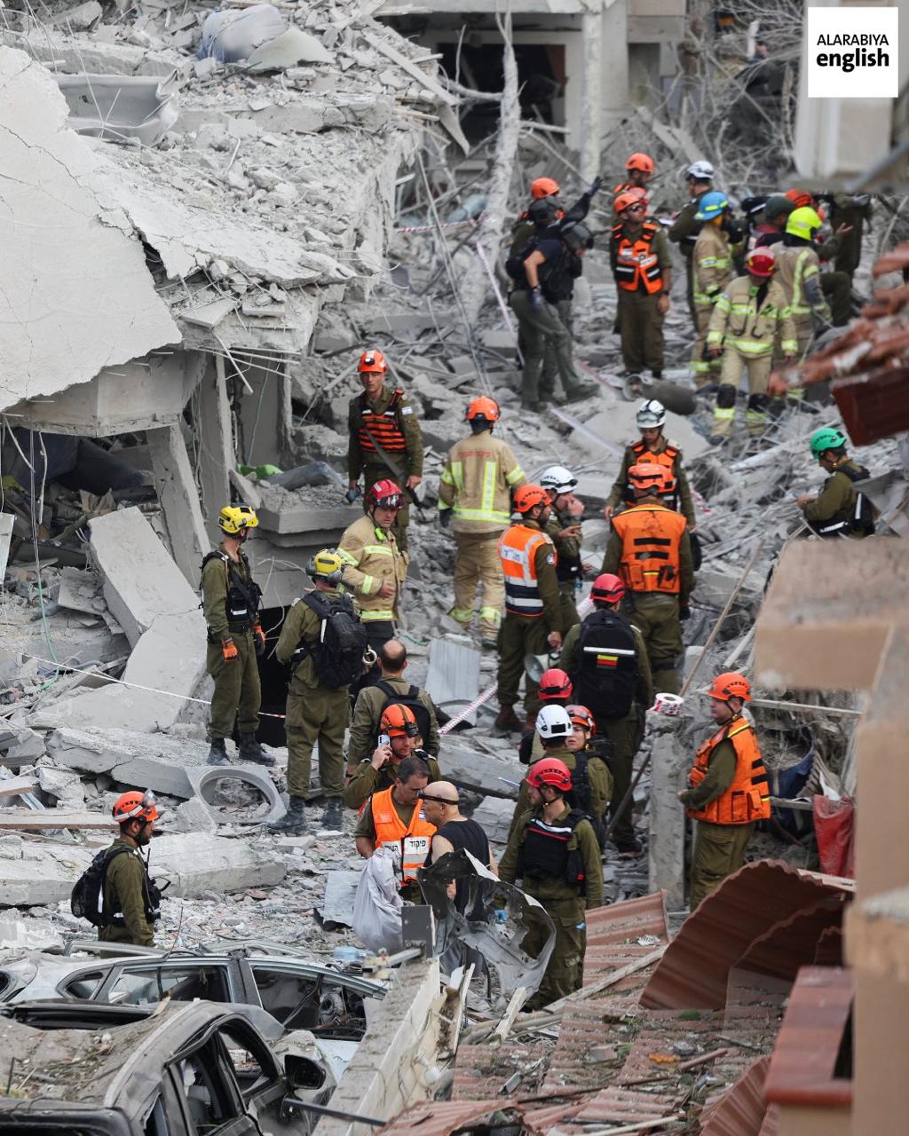 Иранская ракета попала в жилой квартал - разрушены несколько домов, один полностью завален. Известно о 63 пострадавших, один погиб.