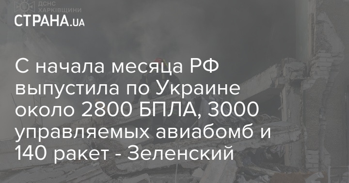 С начала июня Россия выпустила по Украине около 2800 ударных дронов, около 3000 управляемых авиационных бомб и 140 ракет разных типов.