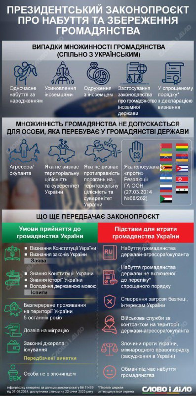 Верховная Рада 243 голосами приняла в целом внесенный президентом законопроект № 11469 о множественном гражданстве. Он подразумевает право для украинцев на двойное гражданство.