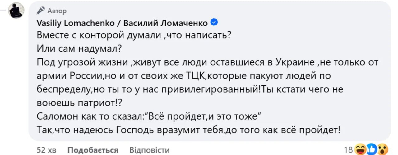 Также мы писали, что в прошлом году Притула попал в скандал из-за оскорбительного комментария в адрес военного 3-й ОШБр.