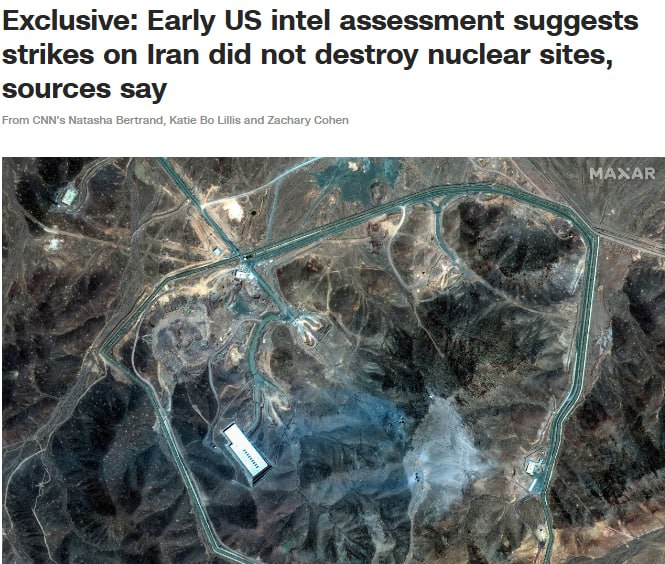 Согласно информации CNN, в отчетах американской разведки говорится, что запас обогащенного урана не был уничтожен и что некоторые центрифуги остались целыми.