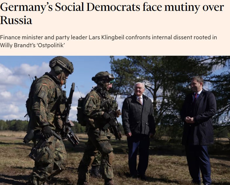 Петер Брандт заявил FT, что социал-демократический вице-канцлер нынешнего правительства Ларс Клингбайль одобрил новый рост расходов на оборону, "не проверив, действительно ли это позиция большинства членов партии".
