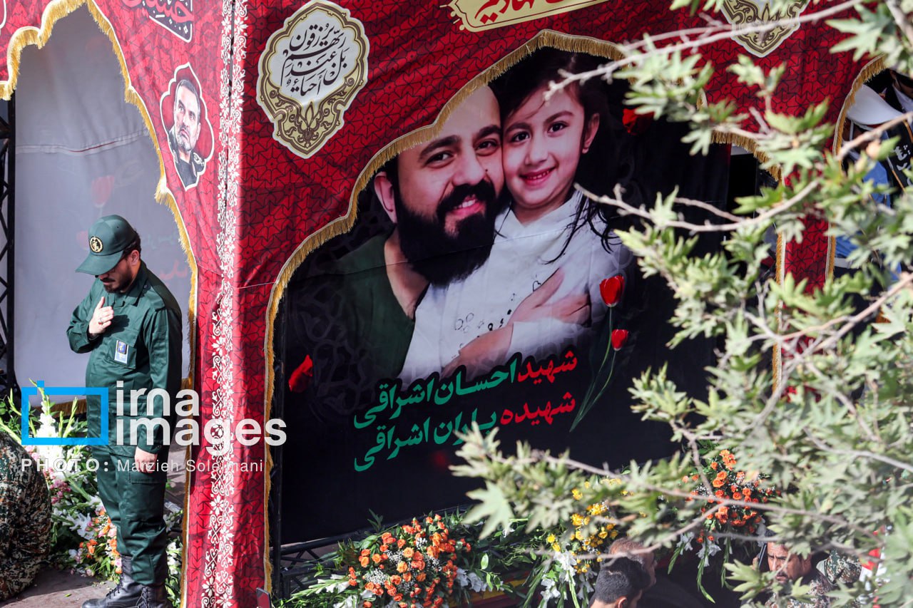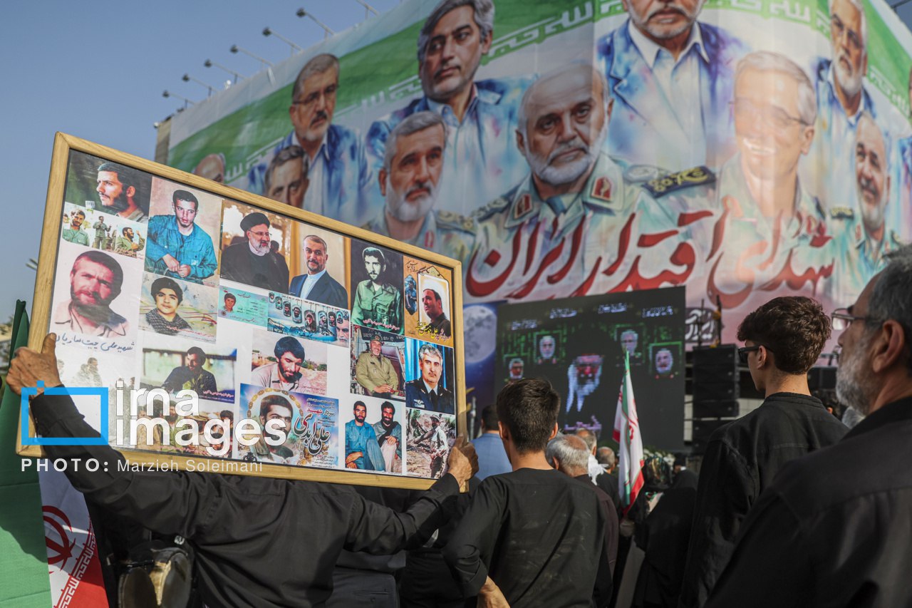 Гробы с телом верховного главнокомандующего Корпуса стражей исламской революции (КСИР) Ирана Хоссейна Салами, а также командующего ВВС КСИР генерала Амира Али Хаджизаде везли в центре Тегерана.