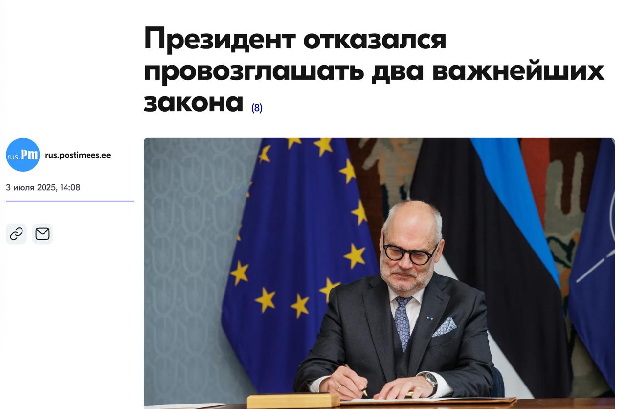 Президент Эстонии Алар Карис во второй раз отказался подписывать закон о церквях и приходах, который открывал дорогу к запрету Эстонской православной христианской церкви. Карис заявил, что этот закон противоречат Конституции.
