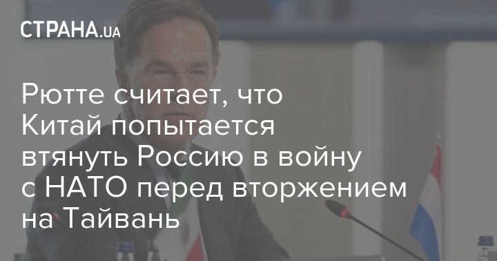 "Если бы Си Цзиньпин напал на Тайвань, он сначала позаботился бы о том, чтобы позвонить своему младшему партнёру по всему этому, Владимиру Владимировичу Путину, проживающему в Москве, и сказать ему: "Эй, я собираюсь сделать это, и мне нужно, чтобы вы не давали им скучать в Европе, атакуя территорию НАТО". Скорее всего, именно так и будет развиваться", – сказал Рютте.