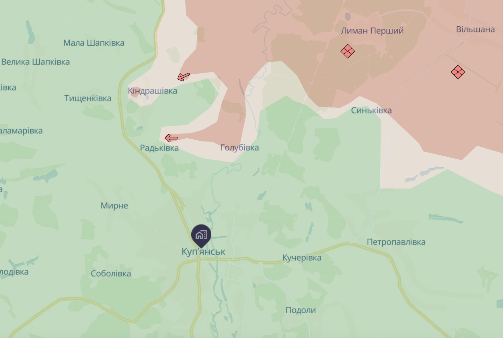 Это прямо в тылу Купянска, к западу от города.
