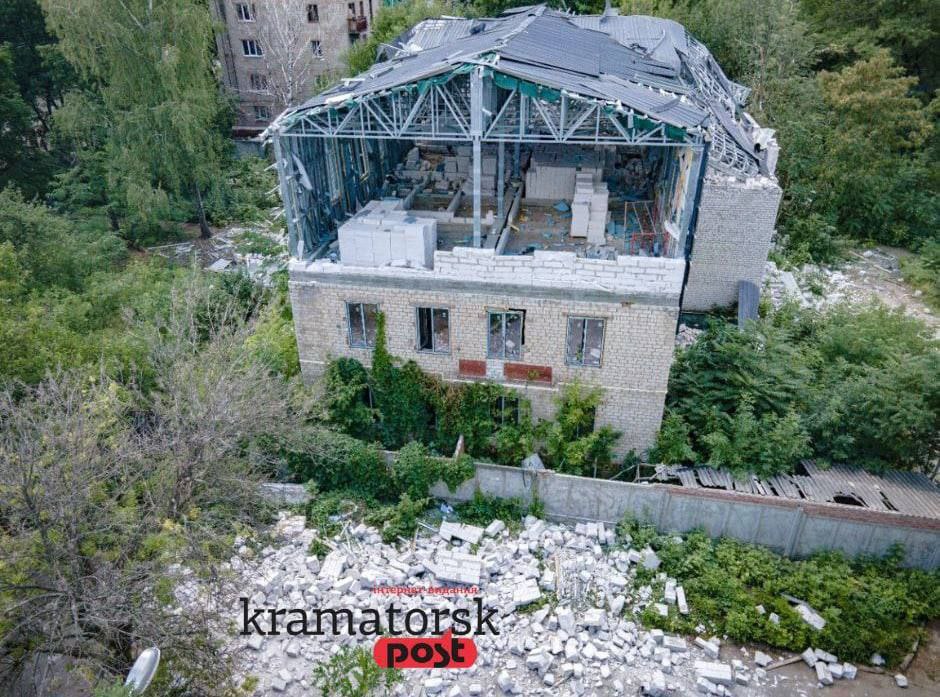 17:55 Последствия ночного прилёта по Краматорску. Сильно пострадало здание бывшего детсада.
