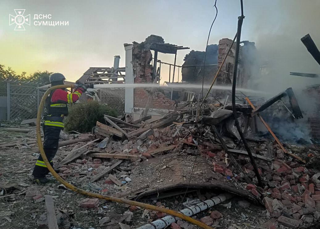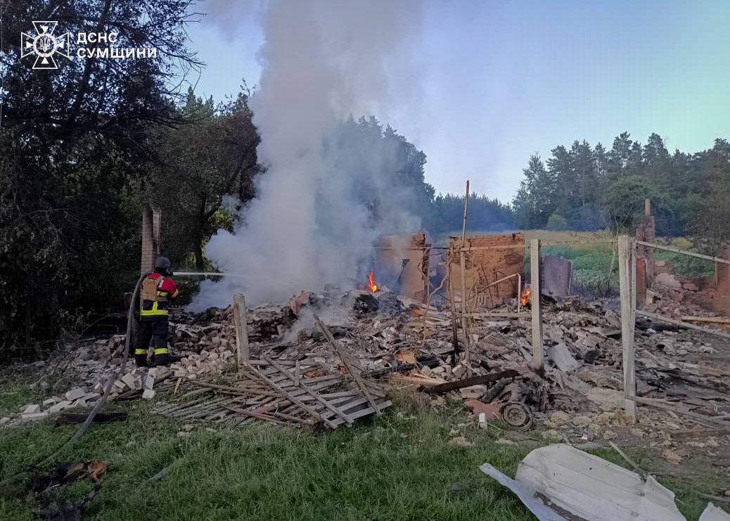 В Сумской области спасатели ГСЧС ликвидировали масштабный пожар после вражеского удара. В результате атаки РФ по Битицкому старостату произошло возгорание двух частных домовладений.