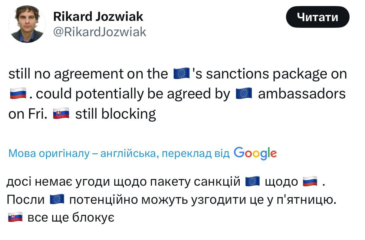 Месяц назад Фицо уже заявлял, что Словакия не поддержит новый пакет.
