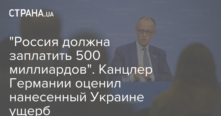 Канцлер Германии Фридрих Мерц считает, что Россия должна выплатить Украине 500 миллиардов евро убытков.