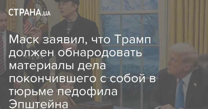 Американский миллиардер и бывший чиновник Белого дома Илон Маск заявил, что президент США Дональд Трамп должен опубликовать файлы покончившего с собой в тюрьме финансиста Джеффри Эпштейна, которого подозревали в организации секс-вечеринок для мировой элиты, как и обещал.
