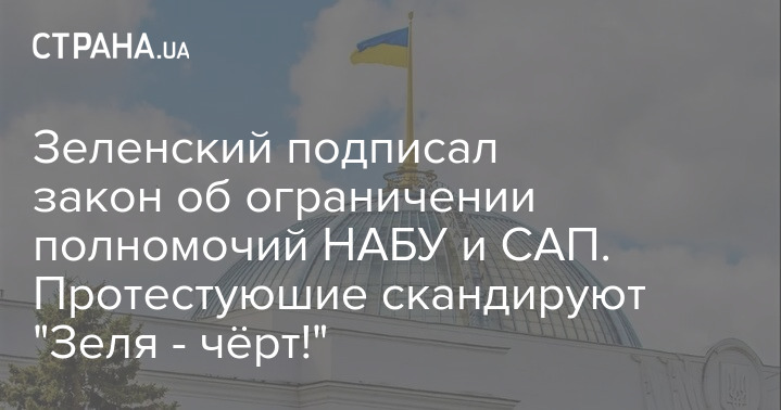 Часть людей осталась на акции протеста против сокращения полномочий НАБУ в Киеве и после известия о подписании закона  Зеленским. Они встретили это сообщение криками "Ганьба!". После чего принялись скандировать "Зеля - чёрт!".