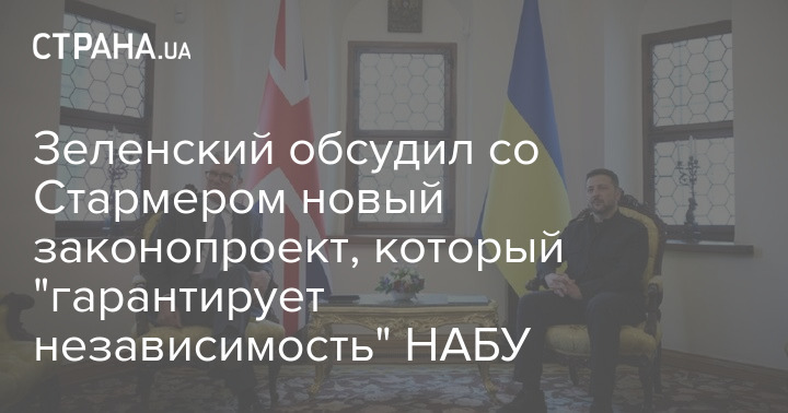 Президент Владимир Зеленский обговорил с премьер-министром Великобритании Киром Стармером новый законопроект, который "гарантирует независимость" НАБУ.