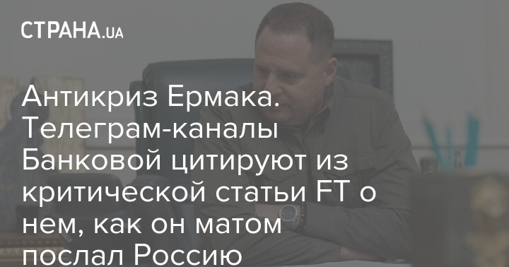 Приближенные к Банковой телеграм-каналы из резко критической статьи британской газеты Financial Times о руководителе Офиса президента под названием "Поляризующая сила Андрея Ермака, другого военного лидера Украины" выделили и опубликовали только один момент.