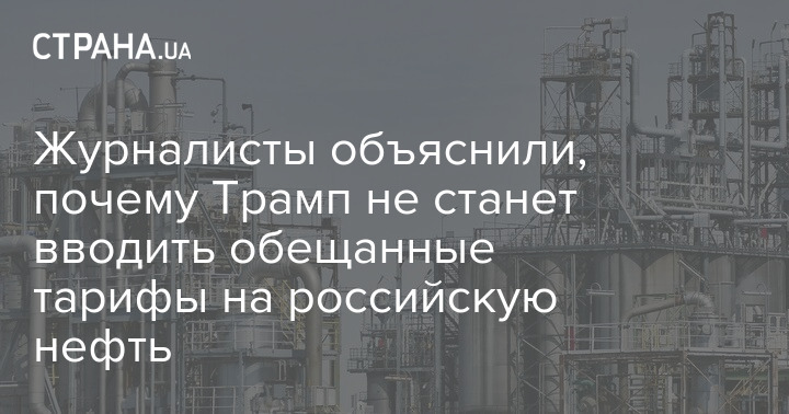 Журналисты объяснили, почему Трамп не станет вводить обещанные тарифы на российскую нефть