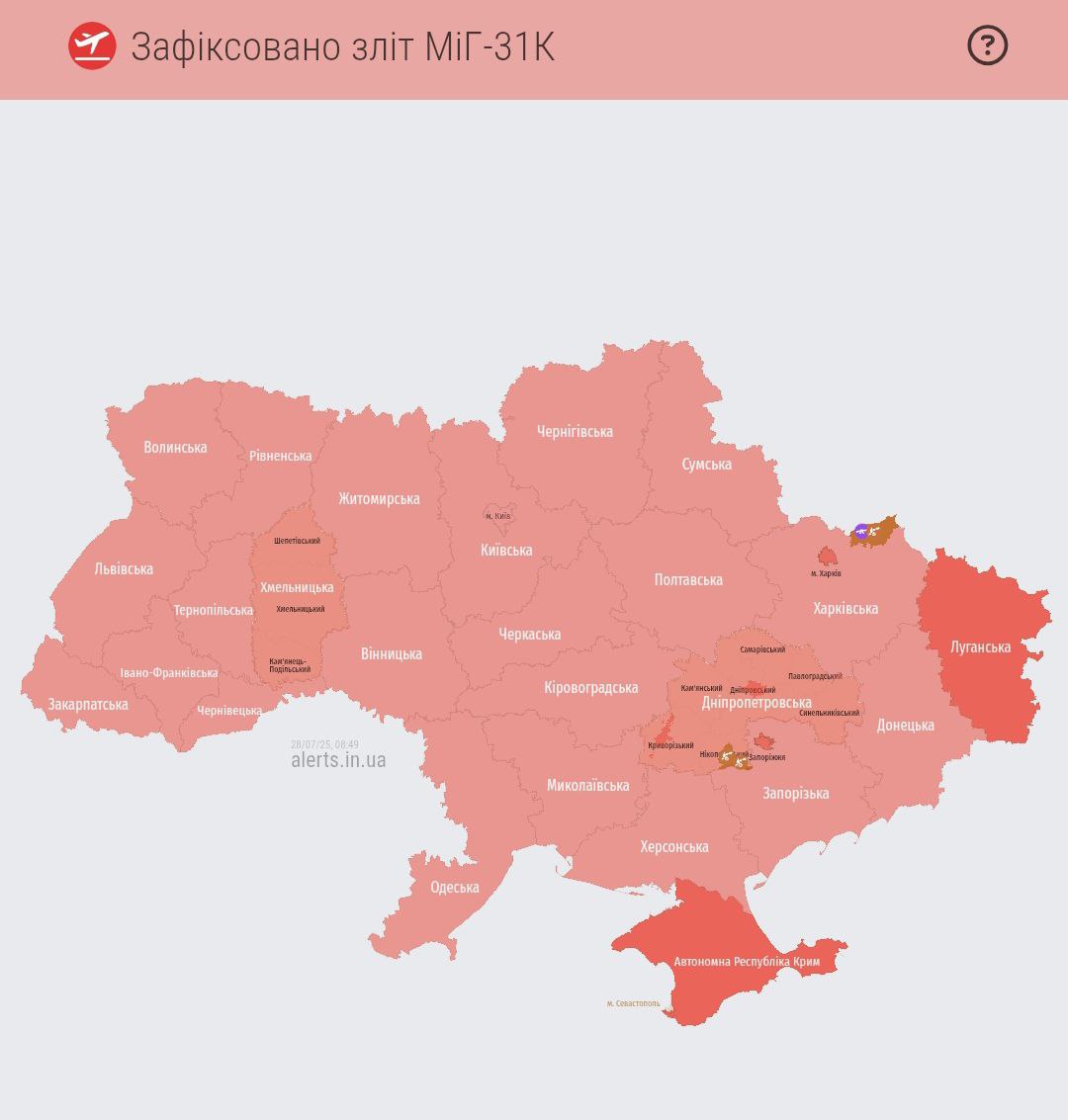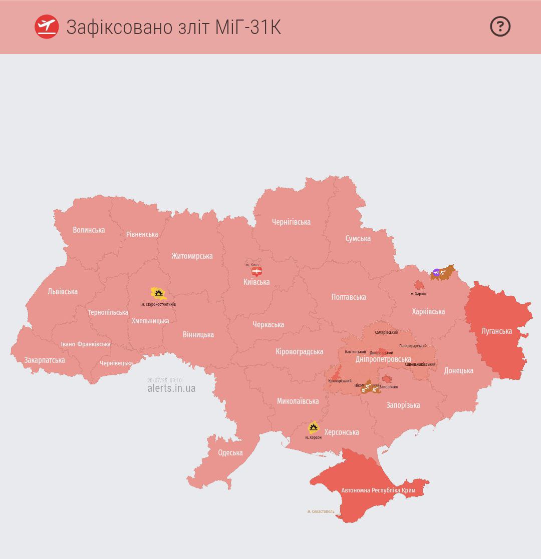 08:51 Новый взлет МиГ-31К и тревога по всей Украине - уже вторая за это утро.