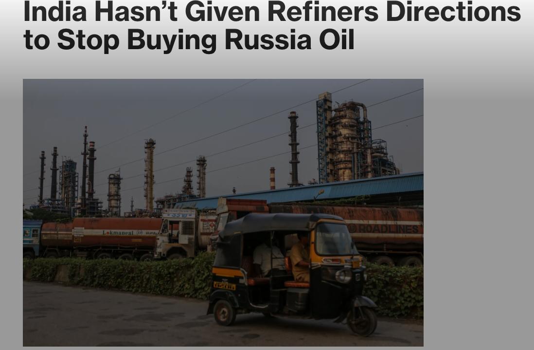 По данным издания Bloomberg, в Индии не давали указаний нефтеперерабатывающим заводам страны отказаться от российской нефти.