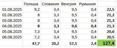 При этом импорт из Румынии через ГИС "Орловка" был небольшим в сравнении с поставками из Венгрии, Польши и Словакии (см таблицу по импорту за первые 6 дней августа).