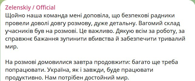 "В ходе разговора договорились завтра продолжить: многое еще нужно проработать", – добавил президент Украины.