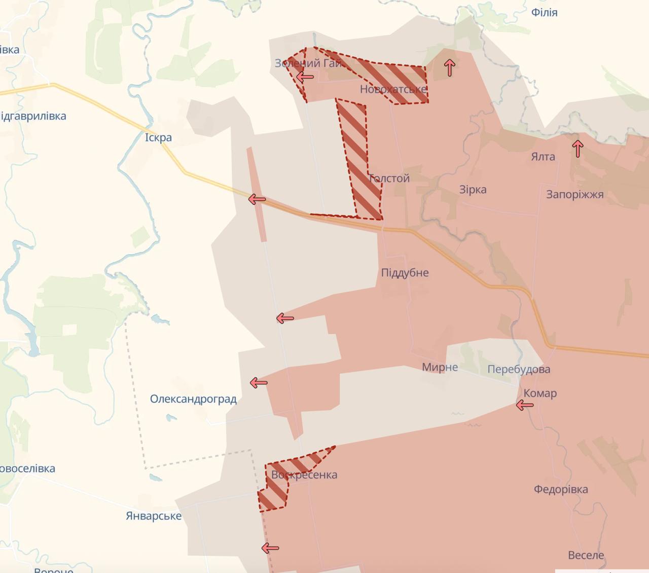 Российские войска захватили два села на границе Днепропетровской области - Новохатское и Толстой. При этом также они продвинулись к Сичневому (Январскому) на территории Днепропетровщины.