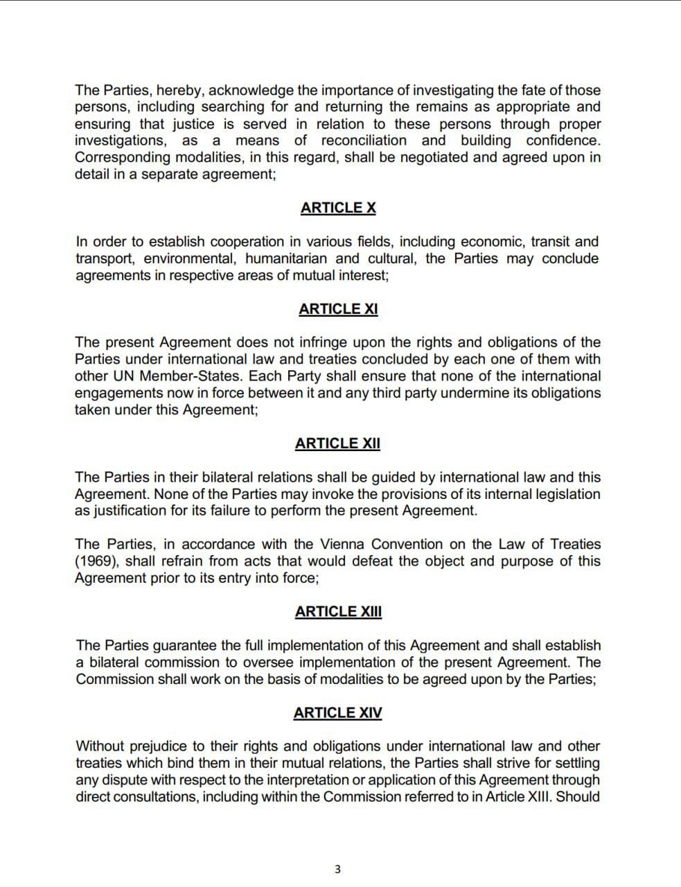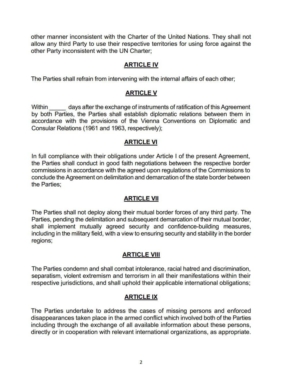 Страны пообещали уважать суверенитет, территориальную целостность, неприкосновенность международных границ и политическую независимость друг друга.
