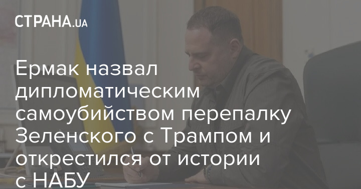 Ермак назвал дипломатическим самоубийством перепалку Зеленского с Трампом и открестился от истории с НАБУ