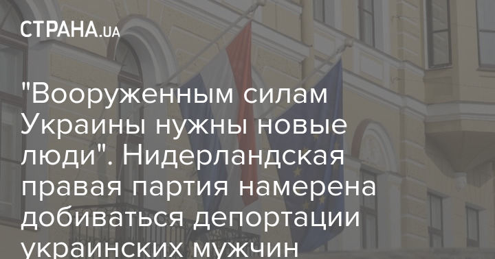"Вооруженным силам Украины нужны новые люди". Нидерландская правая партия намерена добиваться депортации украинских мужчин