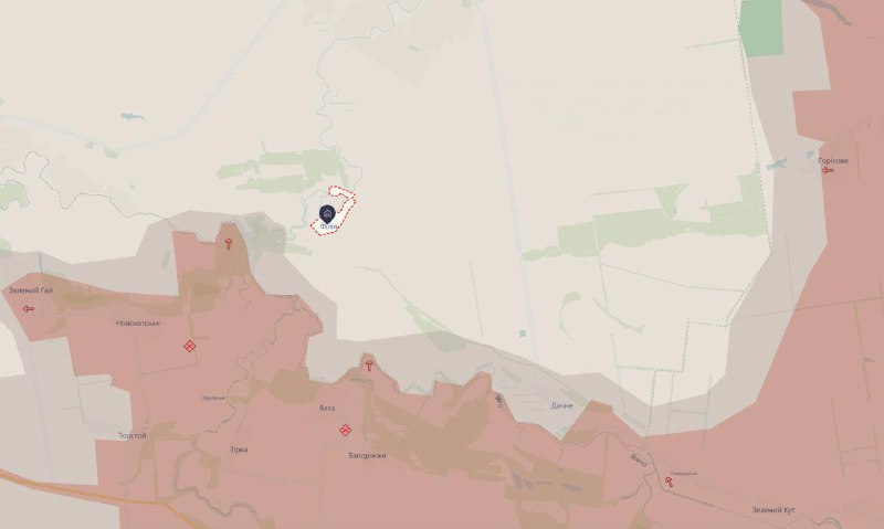 На онлайн-карте боевых действий Deep State населенный пункт находится под контролем ВСУ. Однако неподалеку от серой зоны он пребывает в полукольце российской армии - наступление на него идет с востока и с юга.