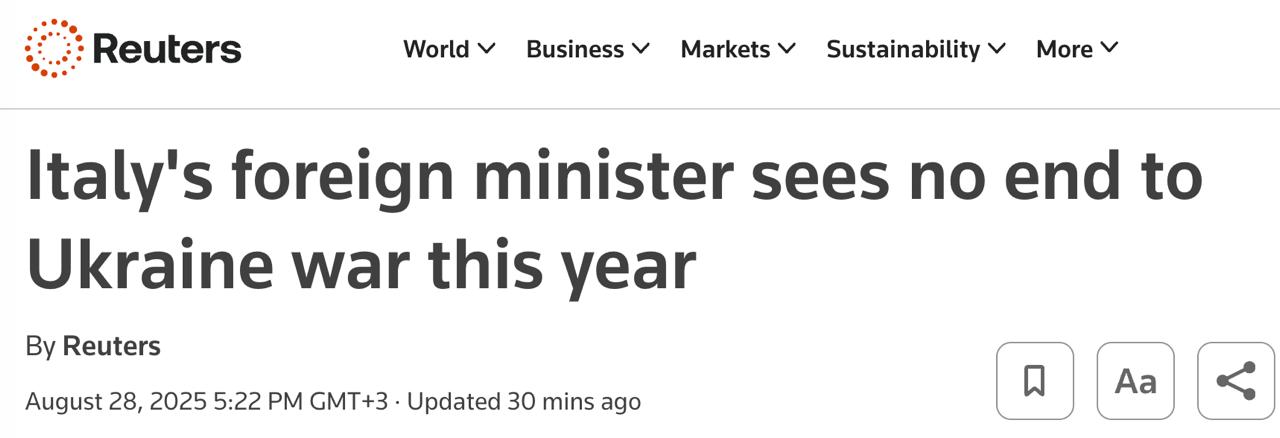 "Война не закончится так скоро, как некоторые говорят и считают... Я не хочу быть пессимистом, но не думаю, что до конца года можно будет найти решение", - заявил он после заседания кабинета министров в Риме.
