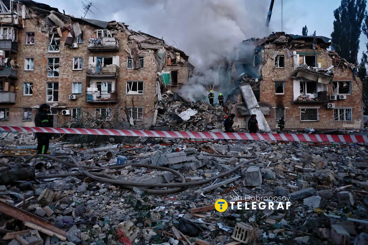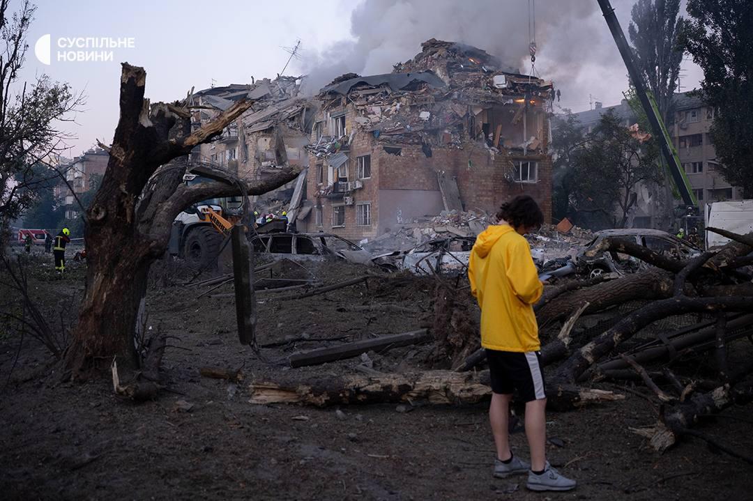 07:49 Кадры разрушенного жилого дома на Дарнице в Киеве, где были погибшие после обстрела.