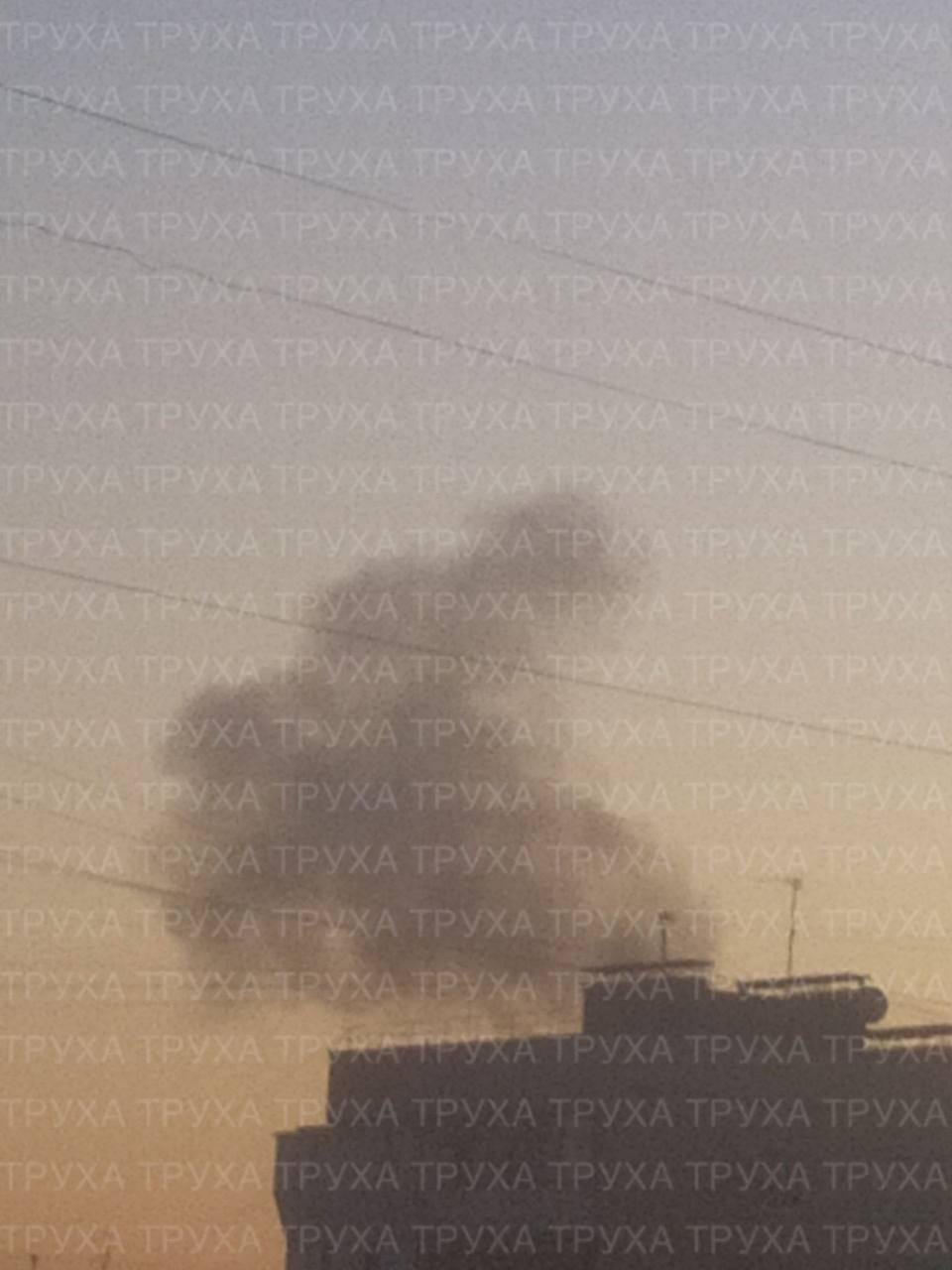 В городе при этом звучали мощные взрывы, с утра Киев затянуло дымом от пожаров, которые тушат с вертолета.