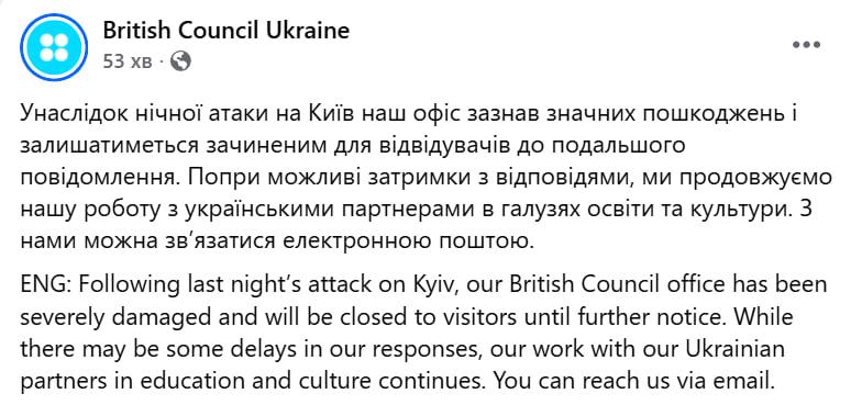 11:23 В Киеве поврежден офис Британского Совета, он закрылся.