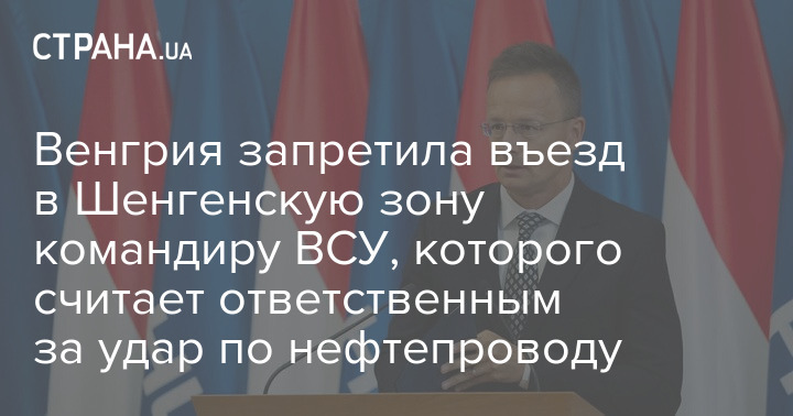 Венгрия заявляет, что запретила въезд в Шенгенскую зону командиру ВСУ, которого считает ответственным за удар по нефтепроводу "Дружба".