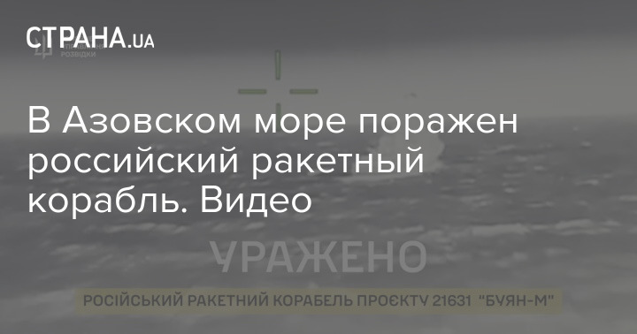 Главное управление разведки Украины заявляет о поражении российского ракетного корабля "Буян-М" в Азовском море. Дроны атаковали корабельную РЛС и борт.