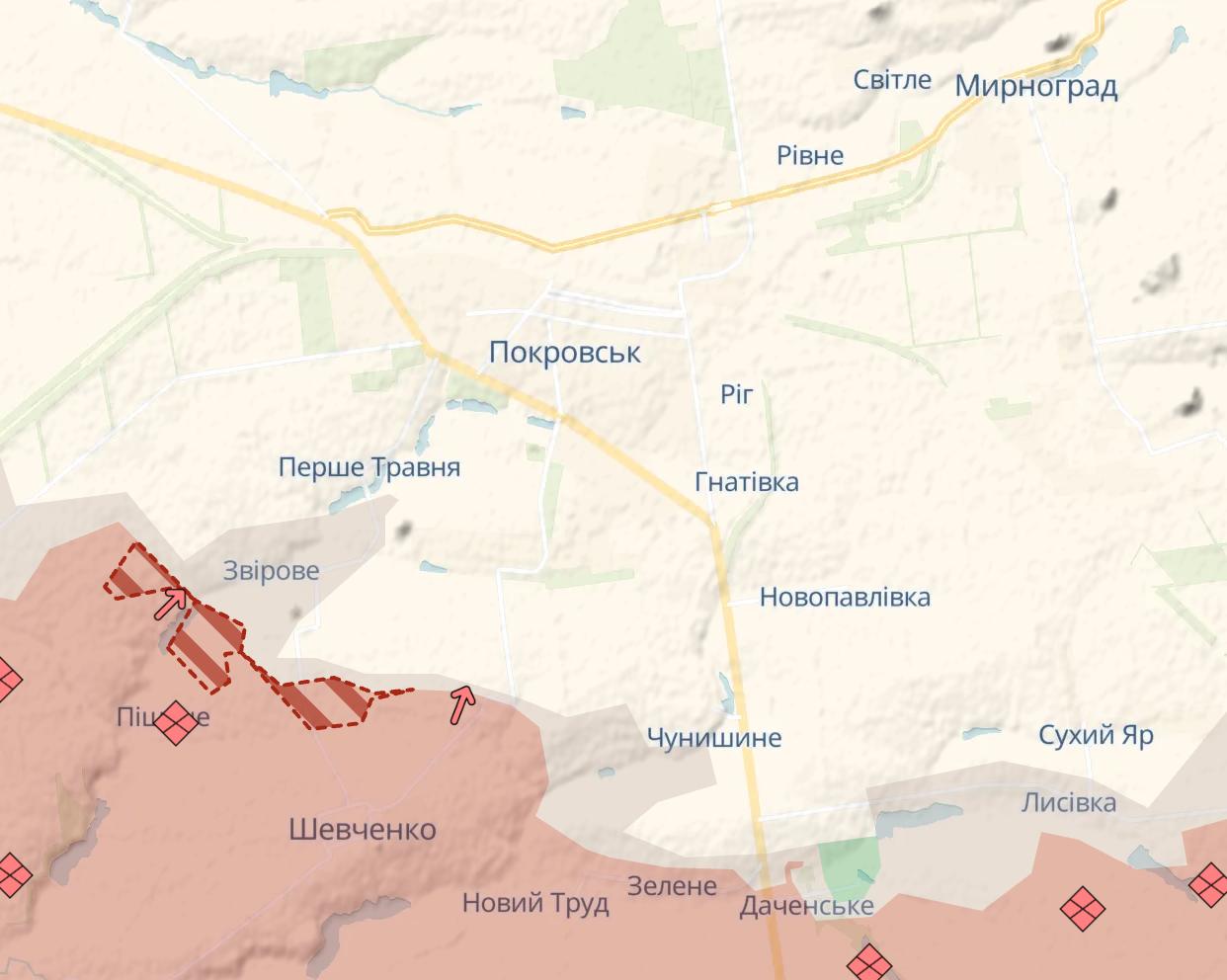 Армия РФ продвинулась под Покровском - в районе Зверево, сообщает Deep State.