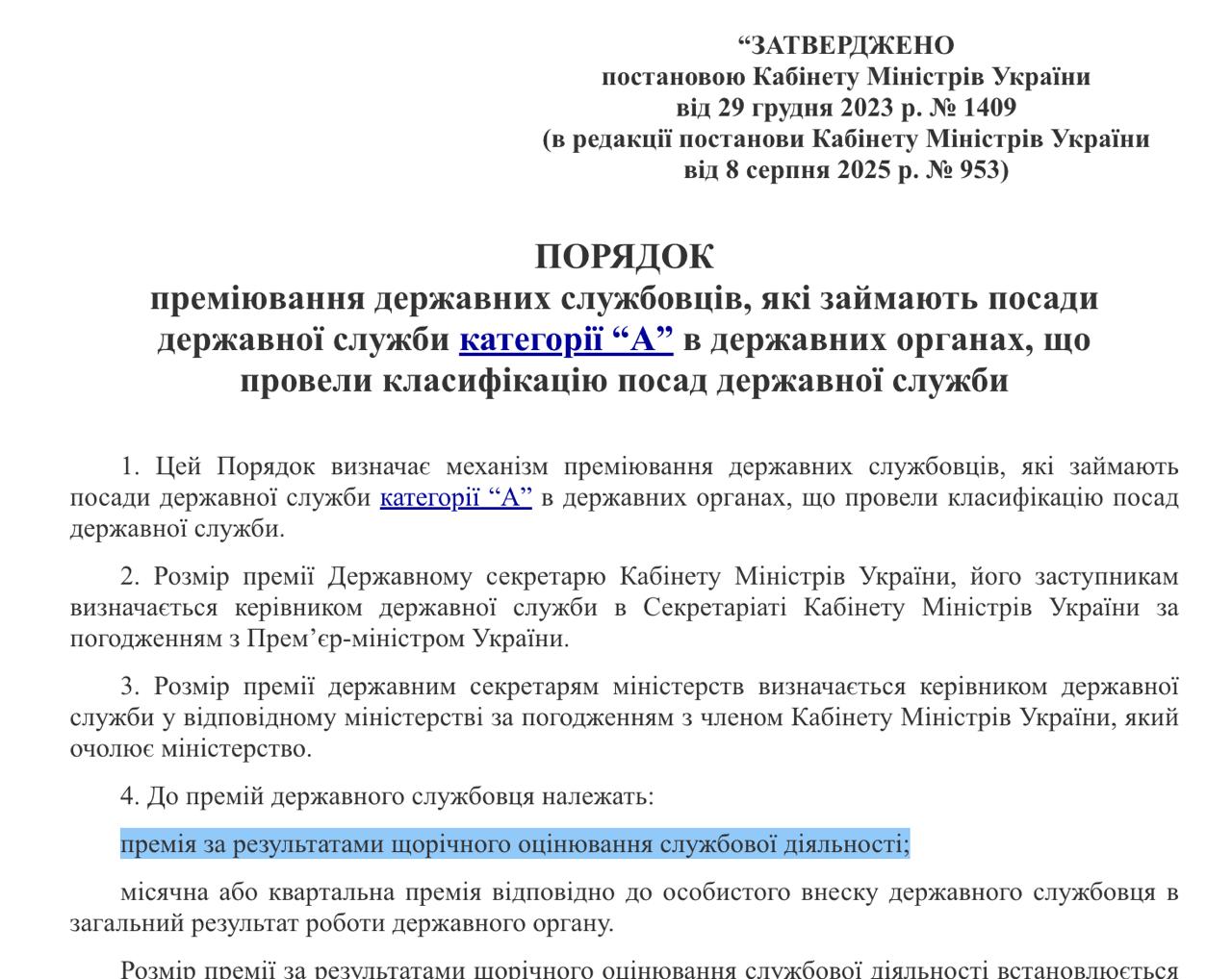 Украинские чиновники будут получать ещё один вид премий - ежегодные.