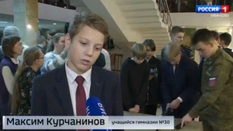 Ролик смонтирован с логотипом телеканала "Россия 1" на основе его репортажа из города Иваново, где военные устроили для школьников выставку на День героев отечества. В сюжете показывают подростка, ученика гимназии № 30 Максима Курчанинова, который умеет обращаться с автоматом Калашникова. Мальчик говорит, что его этому научил отец-военный, который служит в десантных войсках.