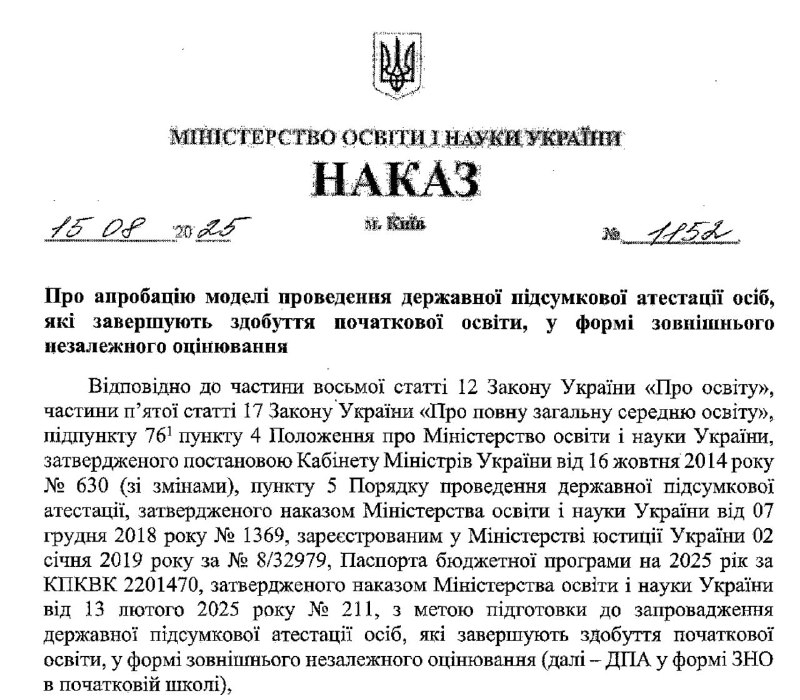 Как сказано в документе, подготовка к внедрению обязательной ГИА в форме ВНО начнется в течение 2025/2026 учебного года. В частности, в течение февраля – апреля 2026 года будет создана и передана Украинскому центру оценивания качества образования (УЦОКО) специальная образовательная платформа для проведения ГИА.