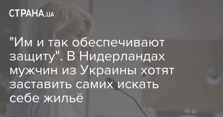 Исполняющая обязанности министра по делам убежища и миграции Мона Кейзер заявила, что находящиеся в Нидерландах украинские мужчины должны самостоятельно позаботиться о своём жилье.