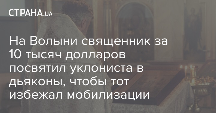 На Волыни священник за 10 тысяч долларов посвятил уклониста в дьяконы, чтобы тот избежал мобилизации