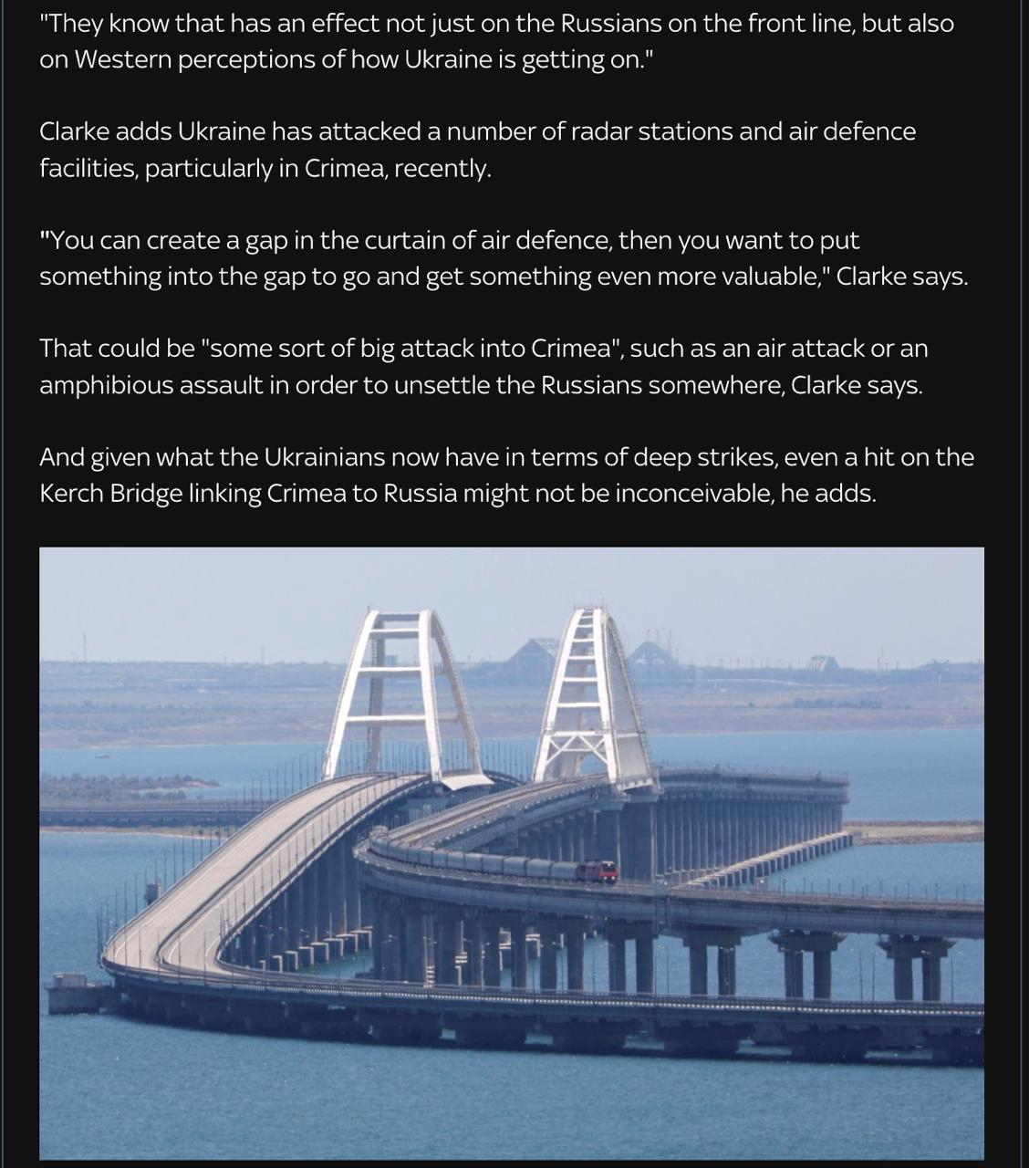 Об этом заявил военный эксперт Майкл Кларк в эфире британского телеканала Sky News.
