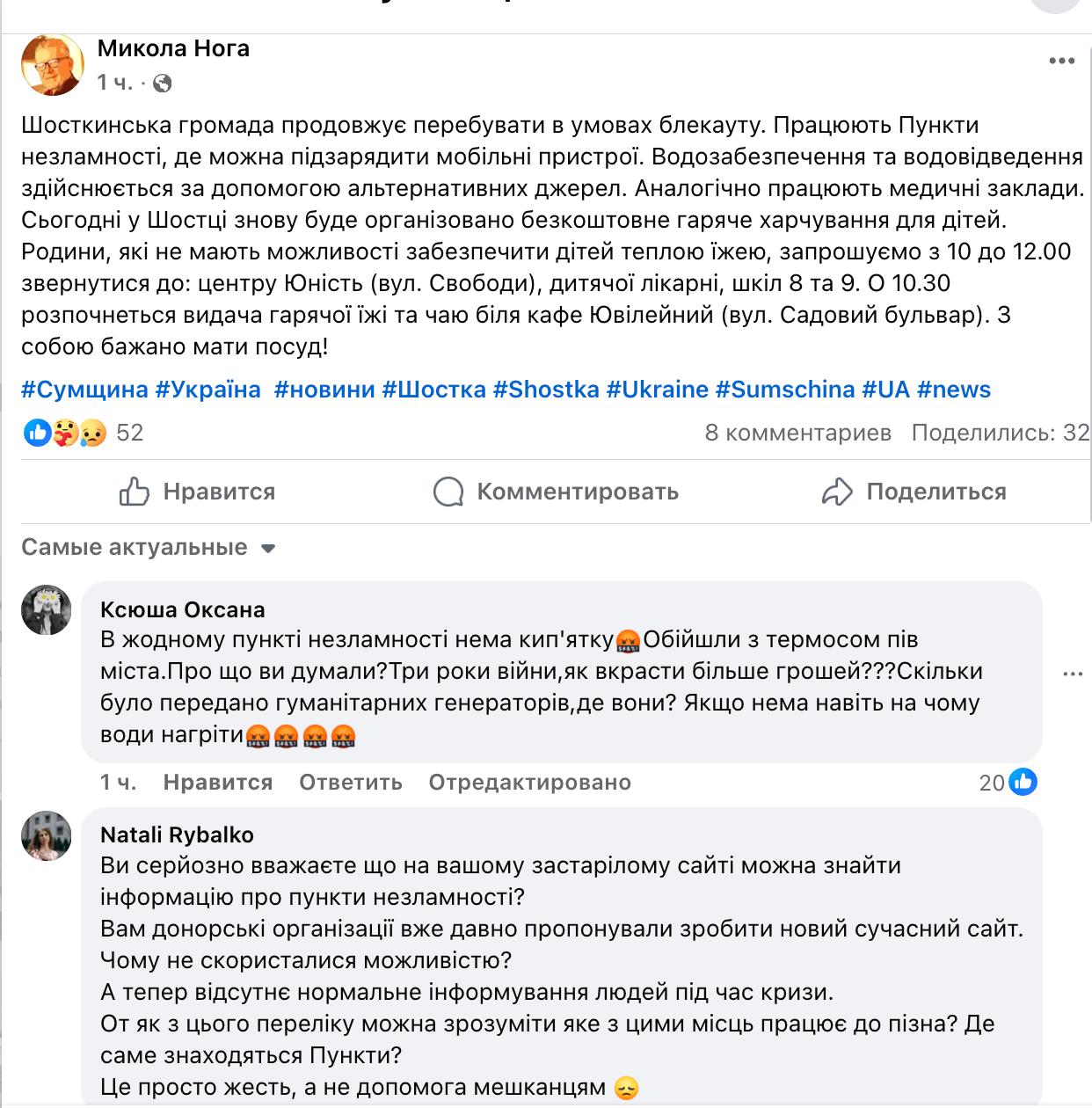 10:23 В Шостке, которую вчера атаковали, по-прежнему нет света, а воду дают по графику, сообщил мэр Николай Нога.