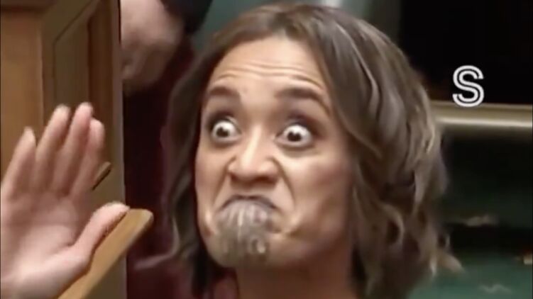 На первом же этаже женщина, которая является новым депутатом парламента "танцует", представляя себя новому обществу. У нее также есть тату на подбородке("моко кауаэ", которое является традиционным украшением, особенно для женщин-маори, символизируя их связь с семьей, генеалогию, социальный статус и лидерские качества - Ред.).