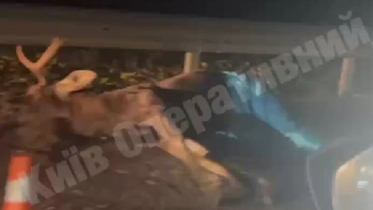 Авто сбило лося на трассе под Киевом. Кадр из видео