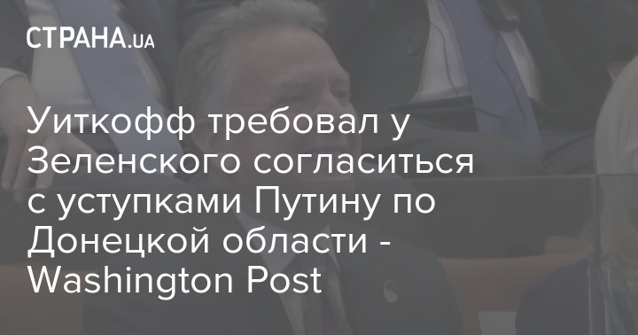 Специальный представитель президента США Дональда Трампа Стивен Уиткофф в пятницу требовал у президента Украины Владимира Зеленского согласиться с уступками Владимиру Путину по Донецкой области.
