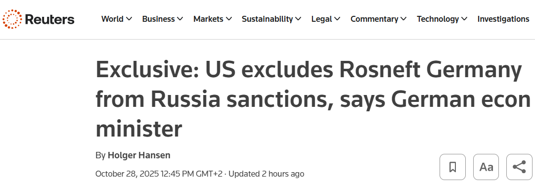 Ранее канцлер Германии Фридрих Мерц заявил, что немецкие дочерние компании "Роснефти" не должны подпадать под новые американские санкции. Подробнее о самих санкциях мы писали в отдельном материале.