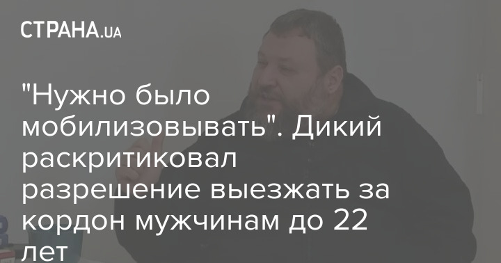 "Нужно было мобилизовывать". Дикий раскритиковал разрешение выезжать за кордон мужчинам до 22 лет