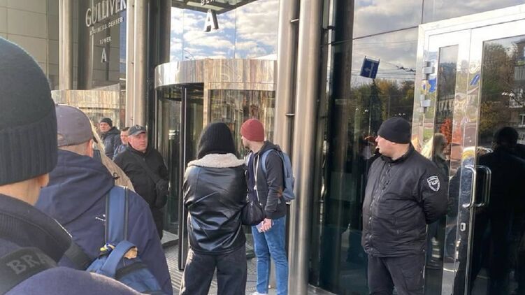 В Киеве с утра вход в ТРЦ Gulliver заблокировали представители Ощадбанка и не пускали некоторых сотрудников в офисы.
