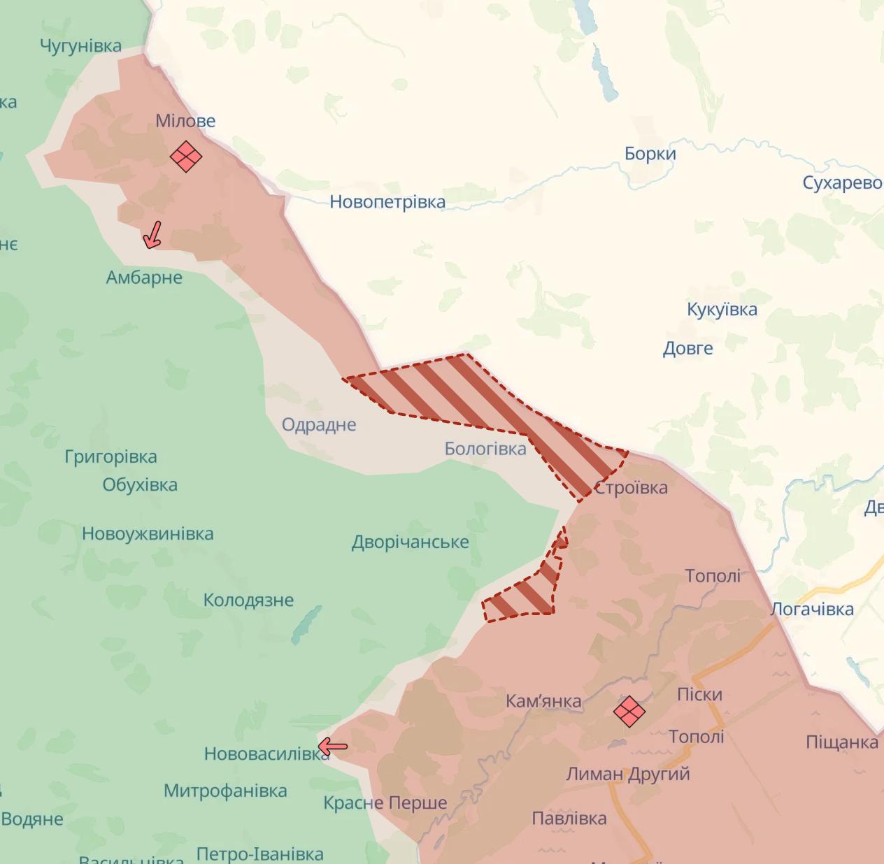 Россияне заняли новые позиции и на границе Харьковской области, соединив свой плацдарм в Меловом с основными захваченными территориями.